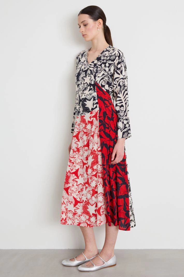 Printed crepe patchwork dress
