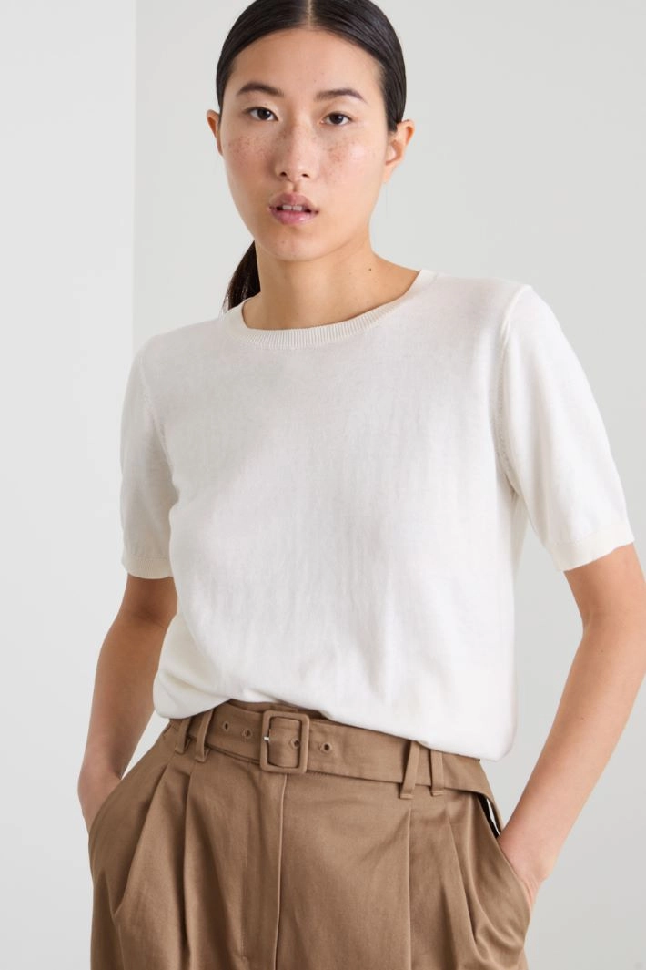Regular-fit sweater IN silk and cotton yarn, with crew neck, short sleeves and ribbed trim.