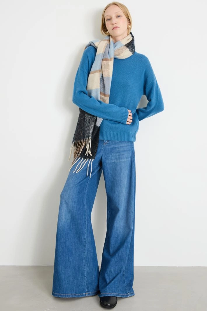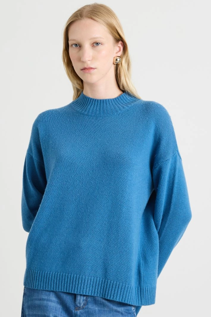 Regular-fit sweater in wool blend yarn, with a crater neck, long dropped sleeves and ribbed trims.