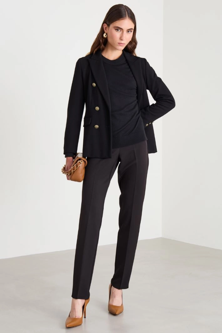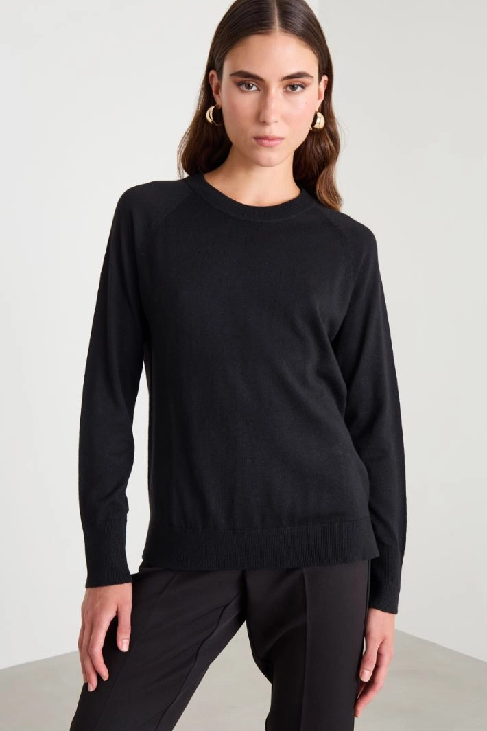 Straight-cut sweater in wool blend yarn, with a crew neck, long raglan sleeves and ribbed trims.
