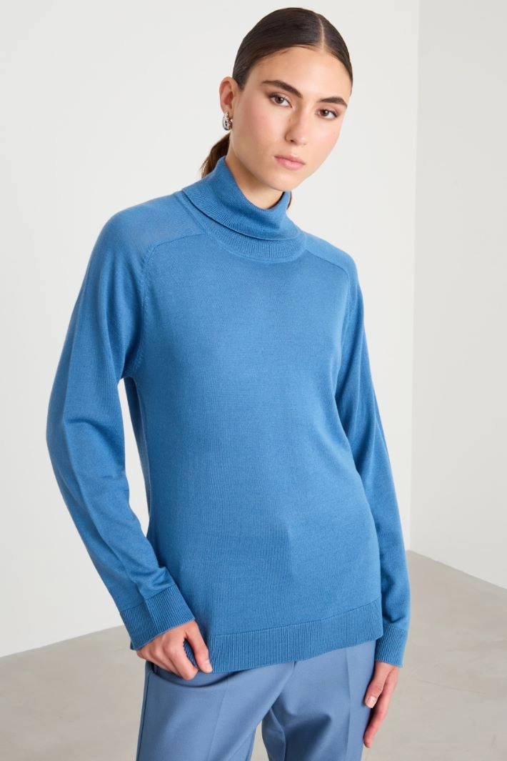 Regular-fit turtleneck in wool blend yarn, with a high turn-up collar, long raglan sleeves and ribbed trim.