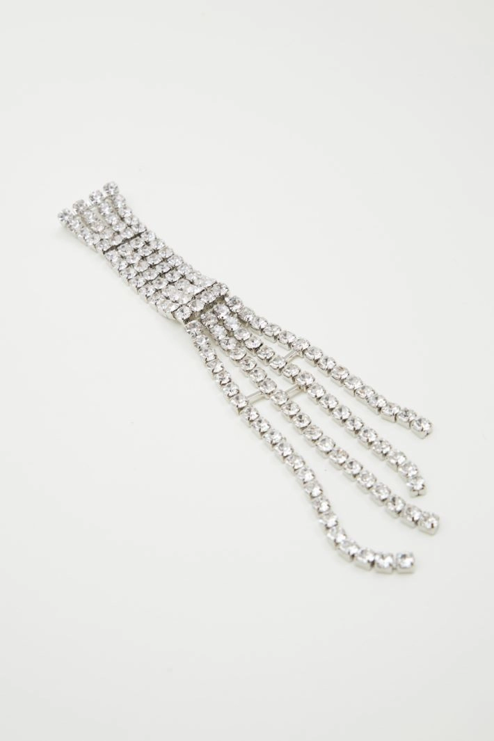 Metal brooch embellished with set rhinestones and crystals. Pin fastening at the back.