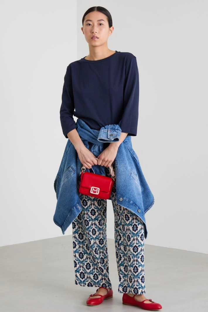 Regular-fit T-shirt in stretch cotton jersey, with a boat neckline, three-quarter sleeves and side slits.