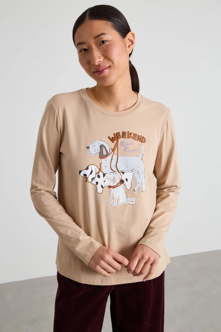 Regular-fit T-shirt in stretch cotton jersey, with printed and embroidered motif on the front, crew neck and long sleeves