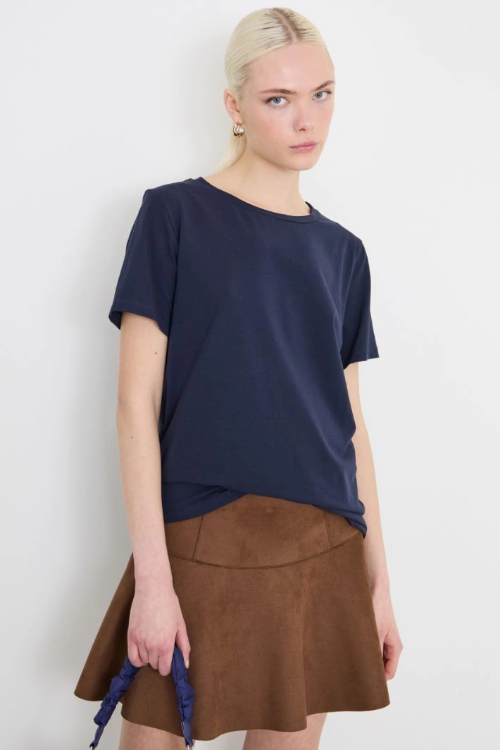Regular-fit T-shirt in stretch cotton jersey, with a crew neck and short sleeves.
