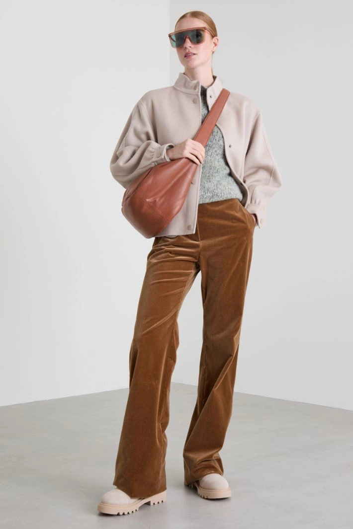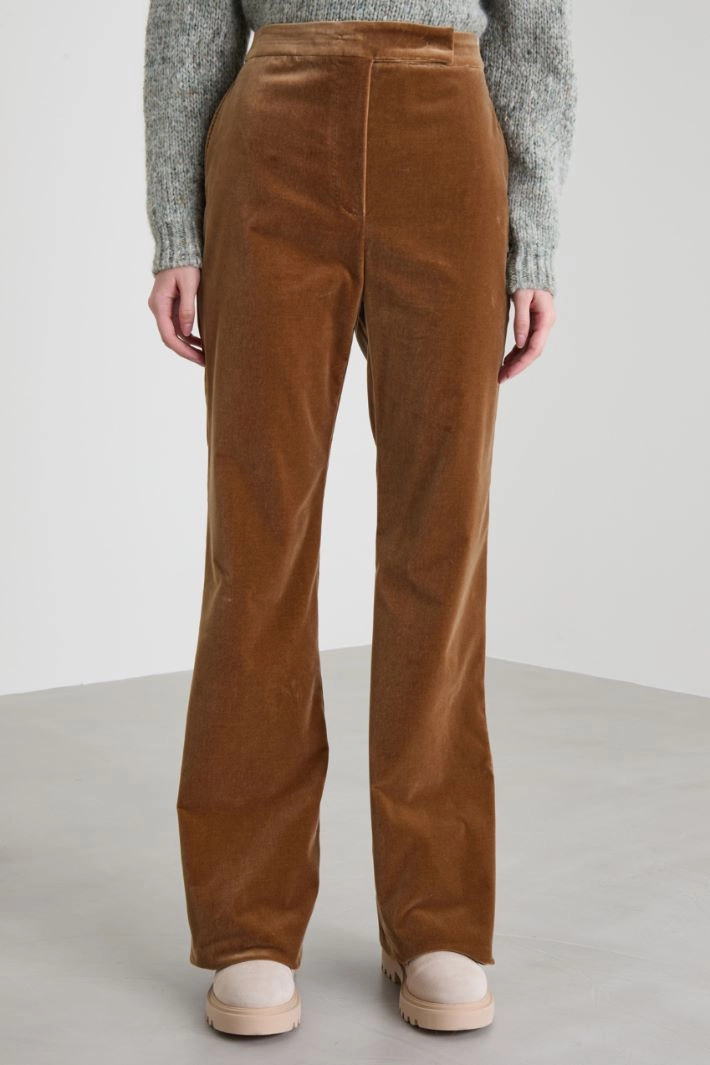 Straight-fit trousers in stretch cotton velvet, with inset side pockets and hidden fastening with zip, button and hook.