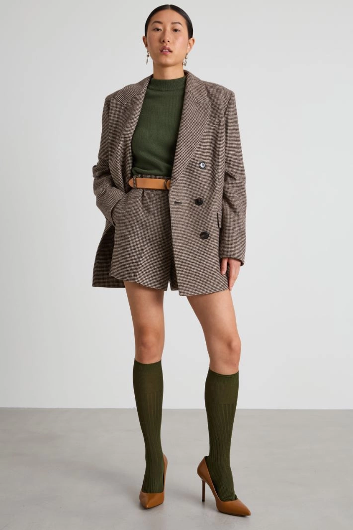Straight-fit shorts in yarn-dyed wool blend flannel, with belt loops at the waist, side French pockets and welt pockets at the back, and invisible zip fastening at the side.