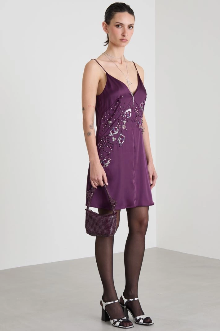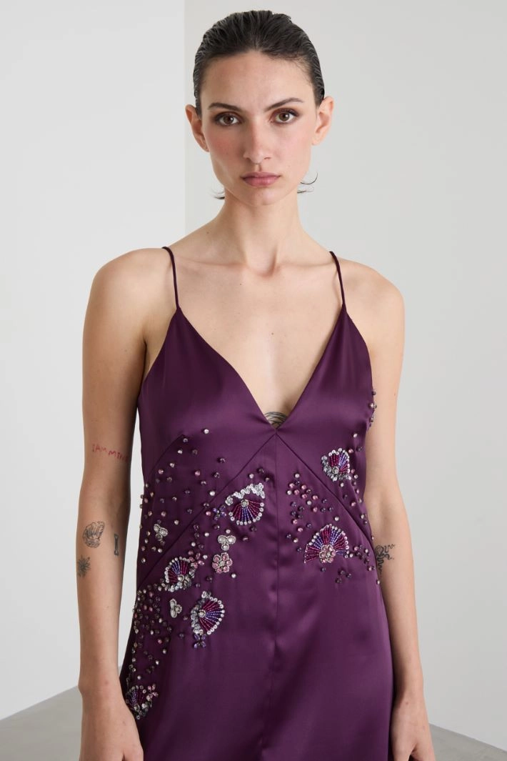 Satin dress with bejewelled embroidery