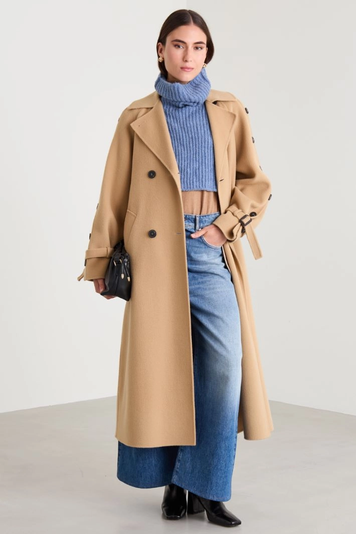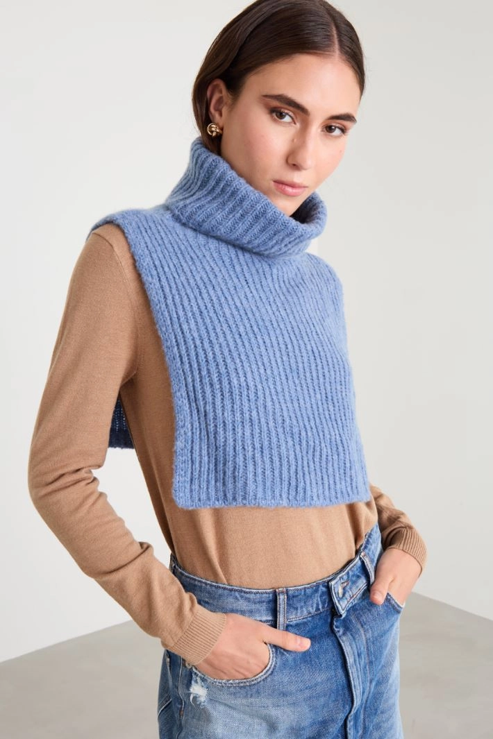 Turtleneck in wool and cashmere blend yarn, with ribbed knit.