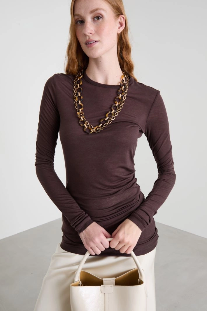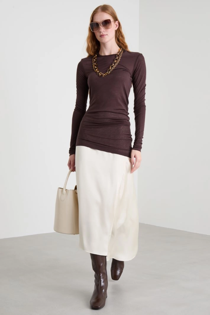 Semi-fitted T-shirt in wool blend jersey, crew neck, long sleeves and asymmetrical hem.
