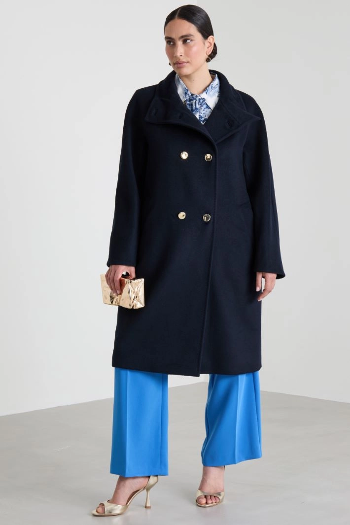 Double-breasted coat in wool drap
