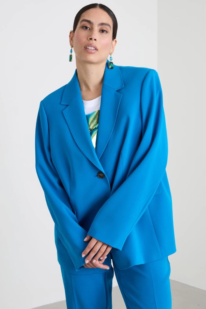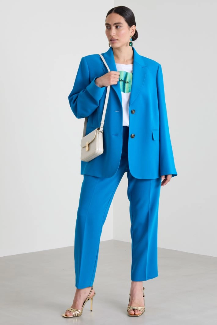 Slightly fitted cady blazer with lapel collar, long sleeves, double welt side pockets with flap and single-breasted button fastening. Lined.
