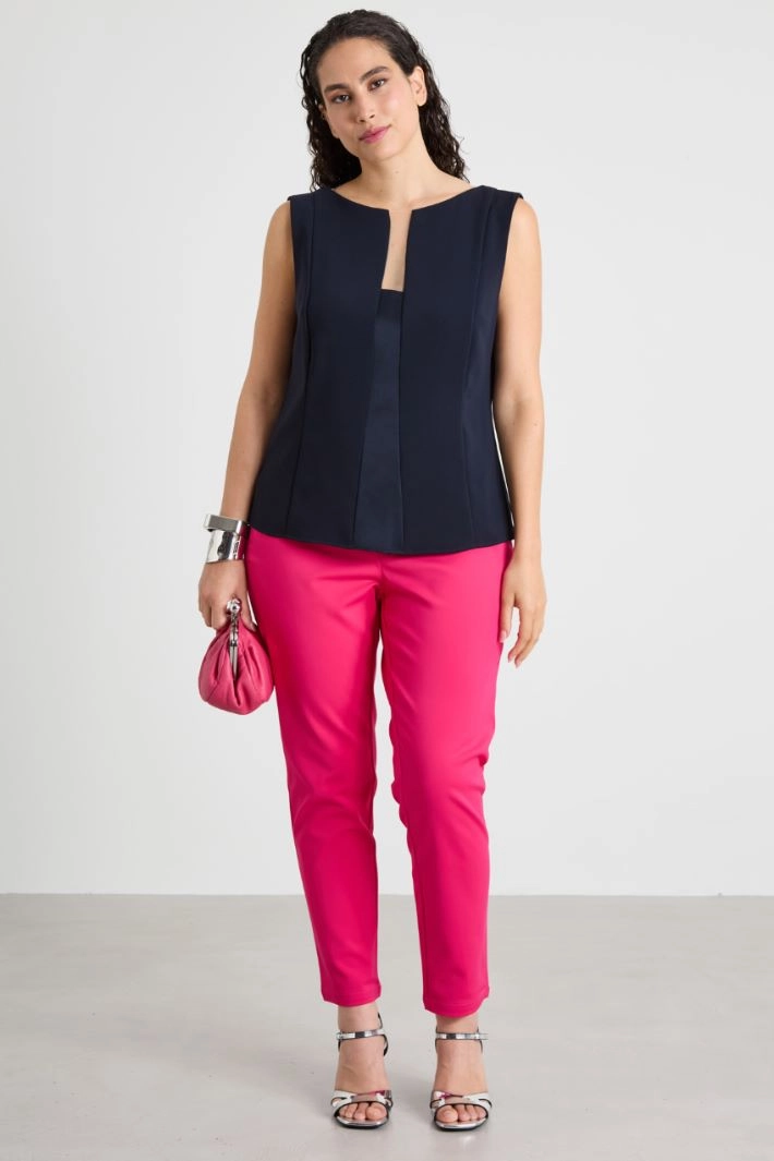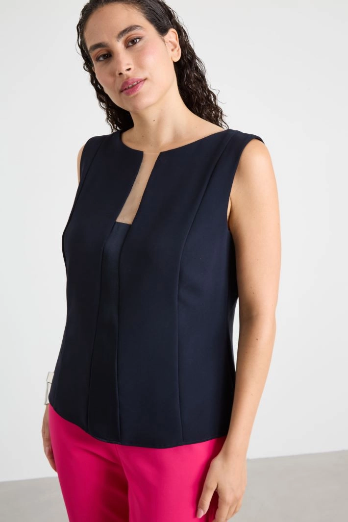 Semi-fitted cady top with a boat neckline and tulle insert. Invisible zip fastening on the back. Lined.
