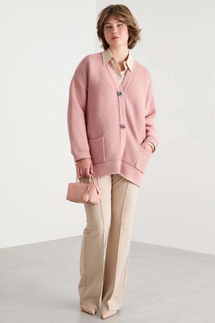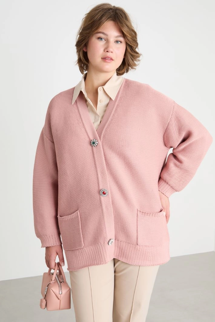 Cocoon cardigan with jewelled buttons