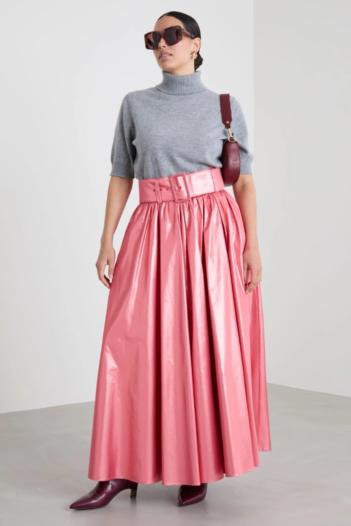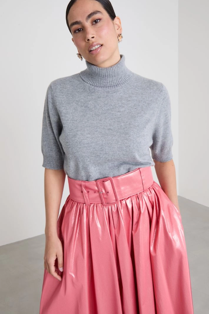 Slim-fit turtleneck in pure cashmere yarn, with a high turn-up collar, short sleeves and ribbed trim.