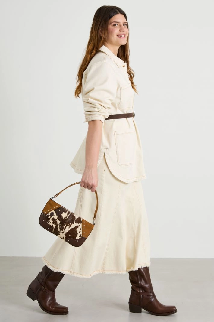 Straight-fit jacket in stretch cotton bull, with shirt collar, long sleeves with cuff and button, patch pockets and side slits. Single-breasted fastening with buttons. Unlined.