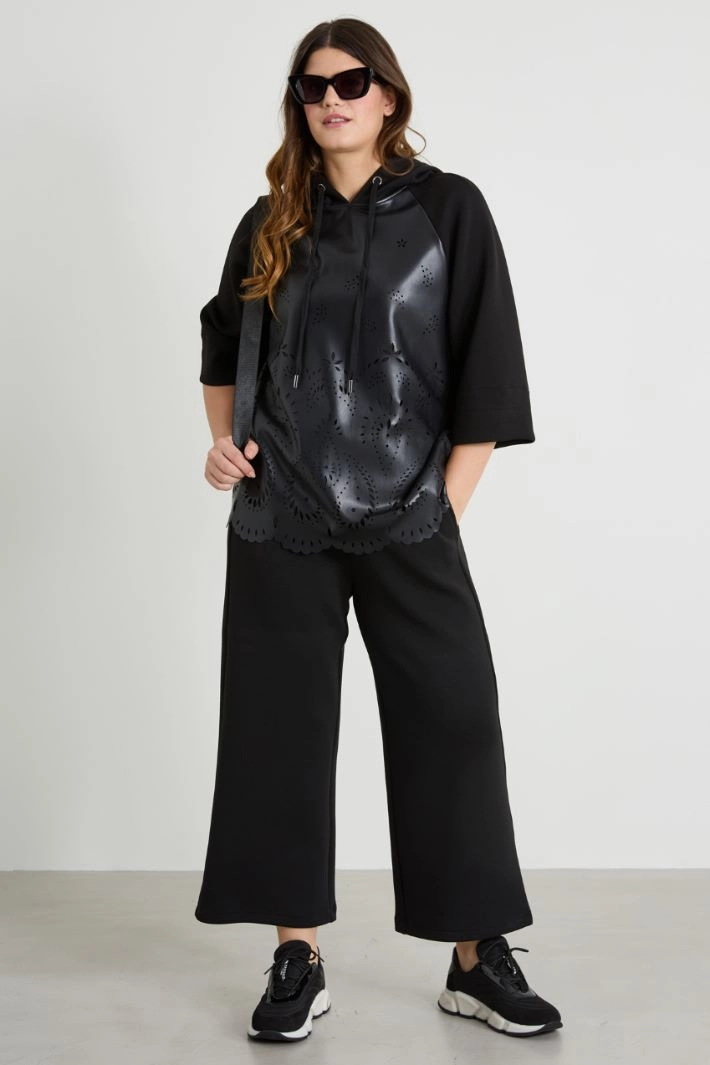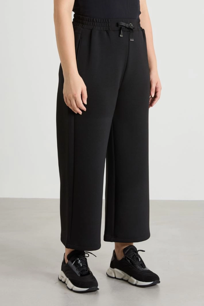 Straight-cut trousers in compact jersey, with elastic insert and drawstring at the waist, and inset side pockets.