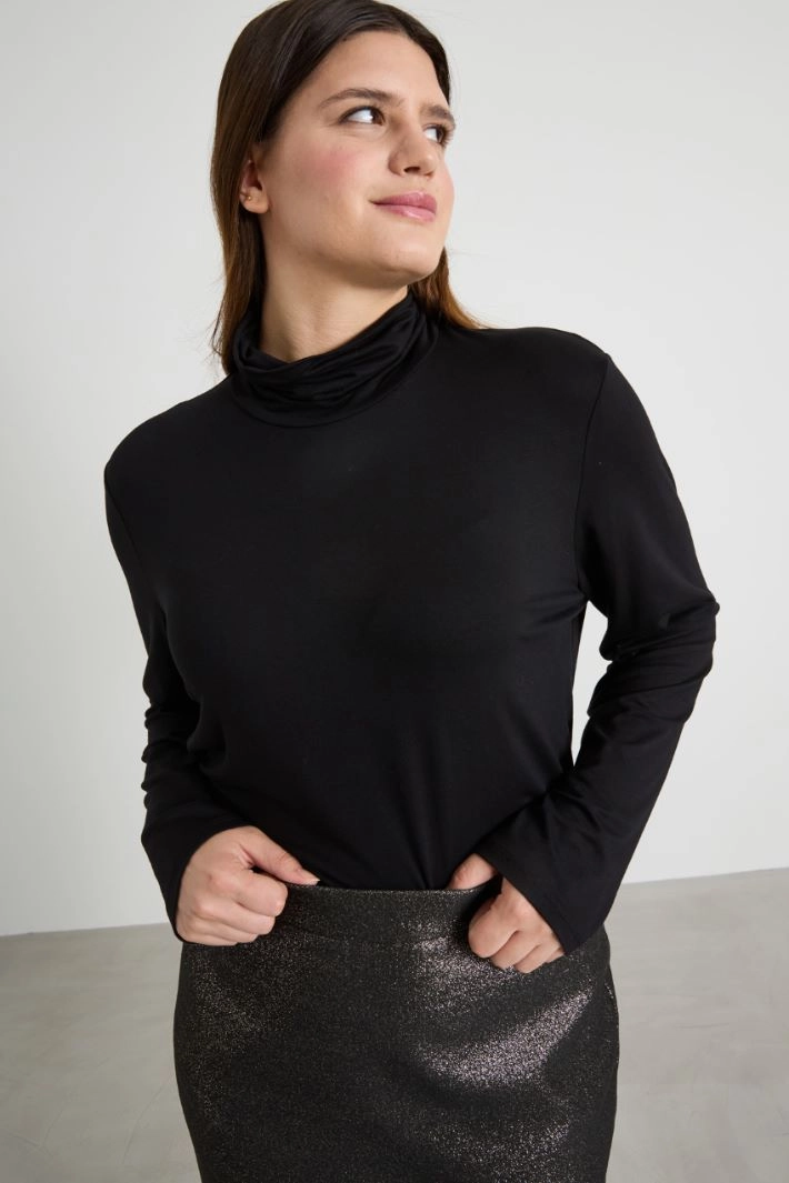 Regular-fit turtleneck in stretch viscose jersey, with a high neck and long sleeves.