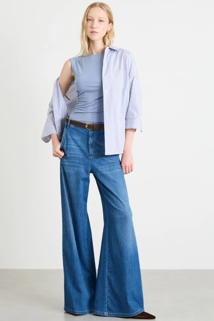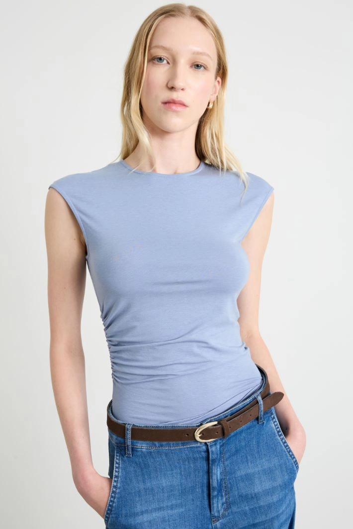 Fitted T-shirt in stretch cotton blend jersey, with a crew neck, short kimono sleeves and a gathered detail on the side.