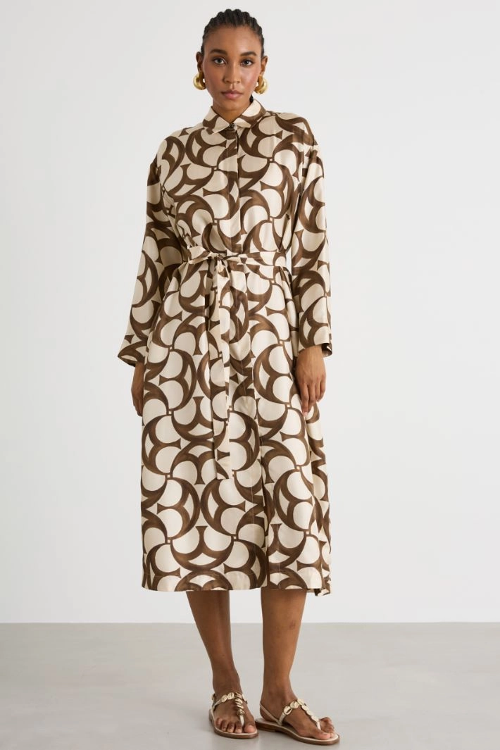 Printed silk shirt dress