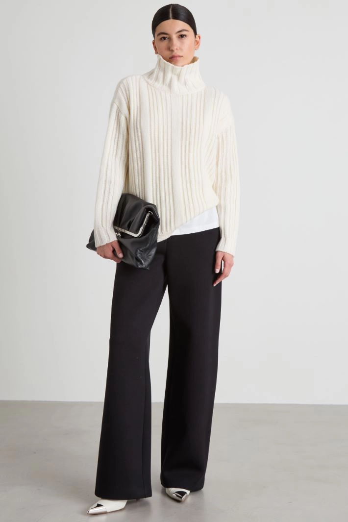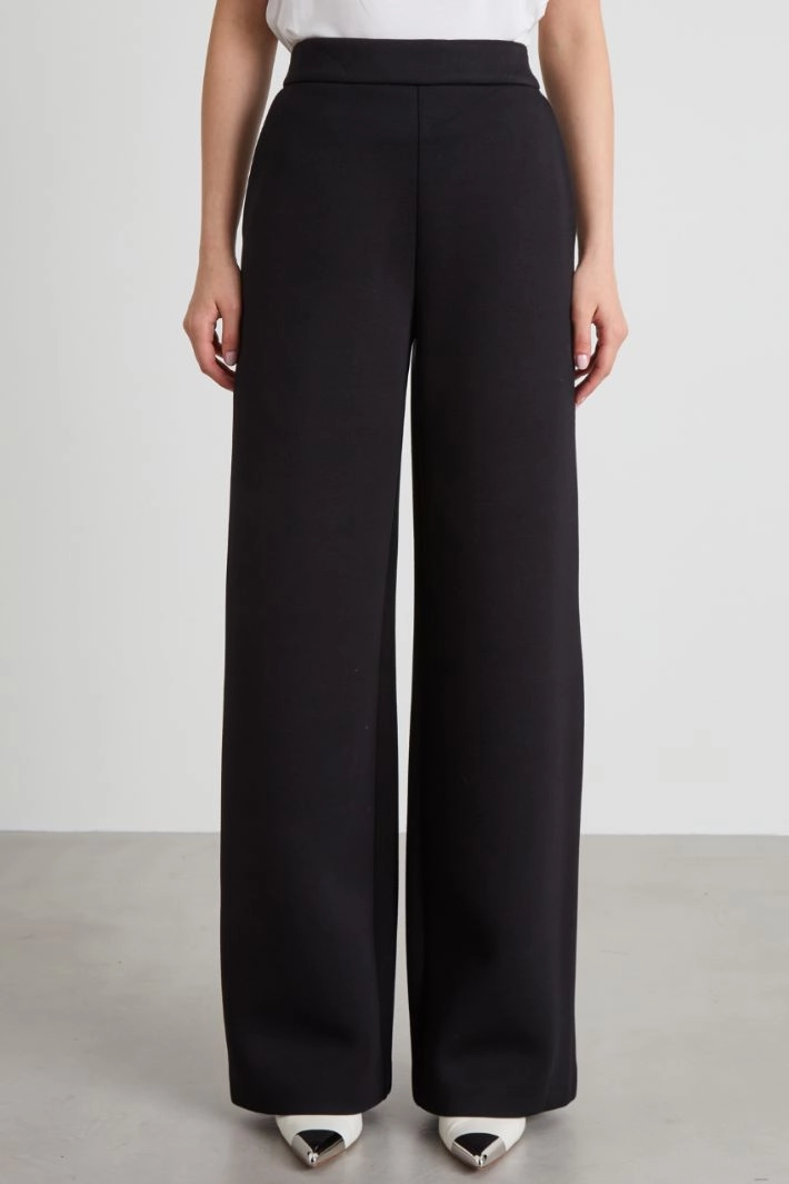 Straight-cut trousers in compact viscose jersey, with French pockets on the sides. Invisible zip fastening on the side.